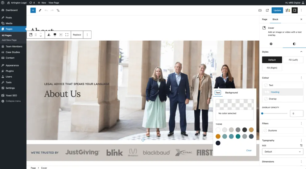 Utilising the latest in WordPress CMS (Content Management System) technology and WordPress’s new full site editing capabilities, Artington Legal can now make rapid changes with needing constant development support.